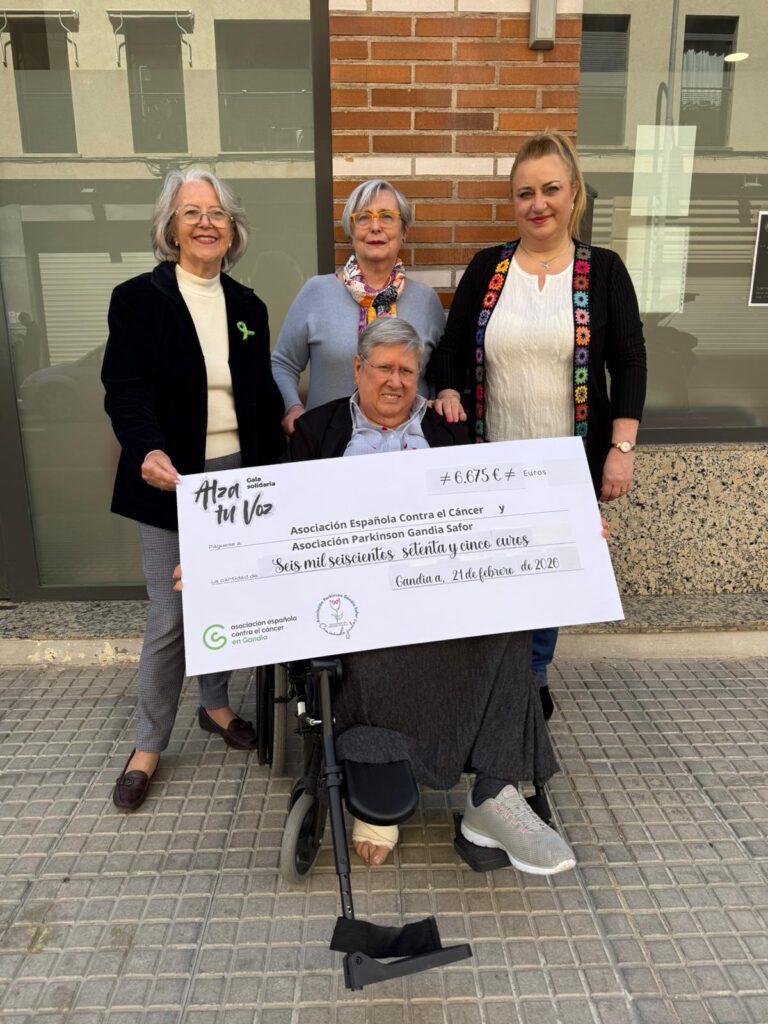 El Teatre Serrano de Gandia volvió a llenarse de arte y solidaridad el pasado 21 de febrero con la celebración de la VIII gala solidaria ‘Alza tu voz’, un evento benéfico que logró recaudar 6.675 euros gracias a la venta de entradas y a las aportaciones de fila 0. La recaudación se destinará íntegramente a los programas y servicios que desarrollan la Asociación Parkinson Gandia Safor y la AECC Gandia.